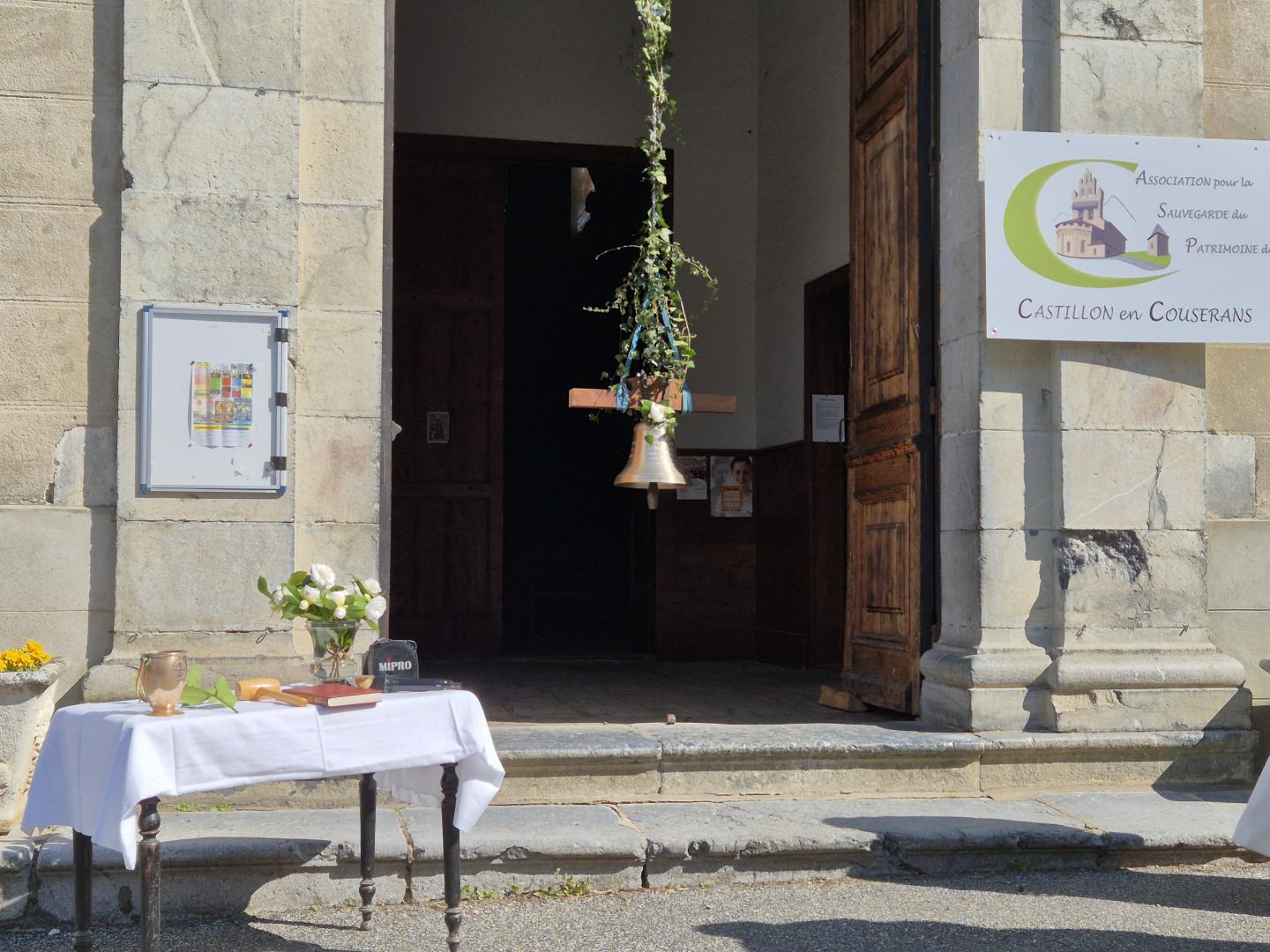 A l'occasion du baptême de la cloche de la chapelle du XIIe siècle du Calvaire de Castillon en Couserans, l'Association pour la Sauvegarde du Patrimoine de Castillon tient à exprimer sa profonde gratitude à Madame Eliane Lhernoud, castillonnaise, pour son généreux don.