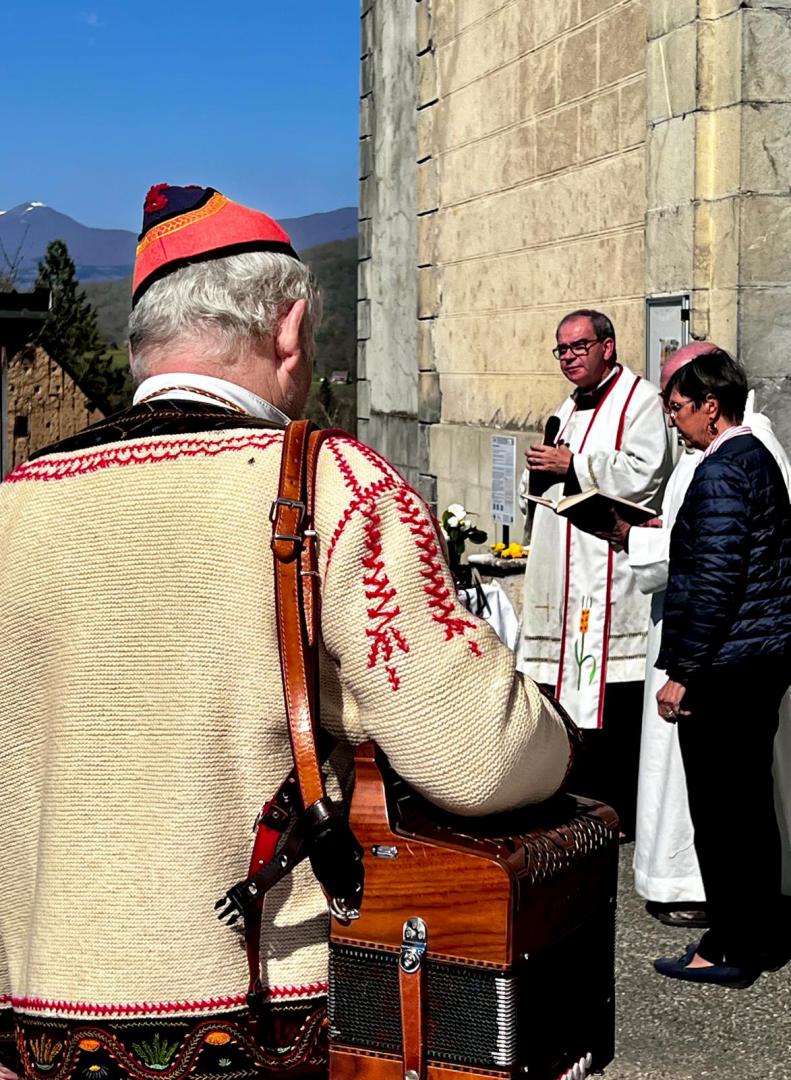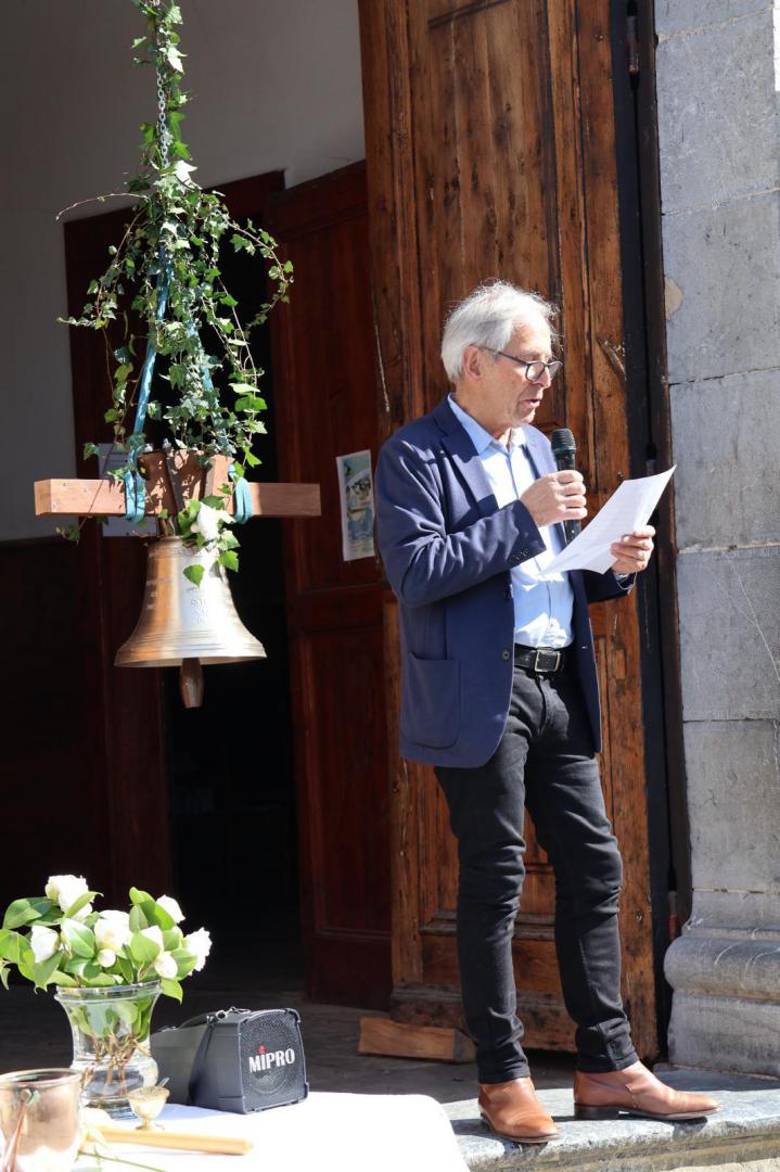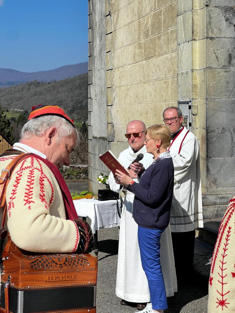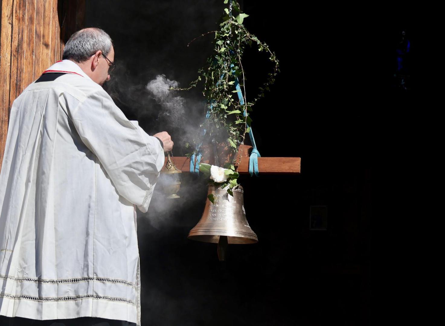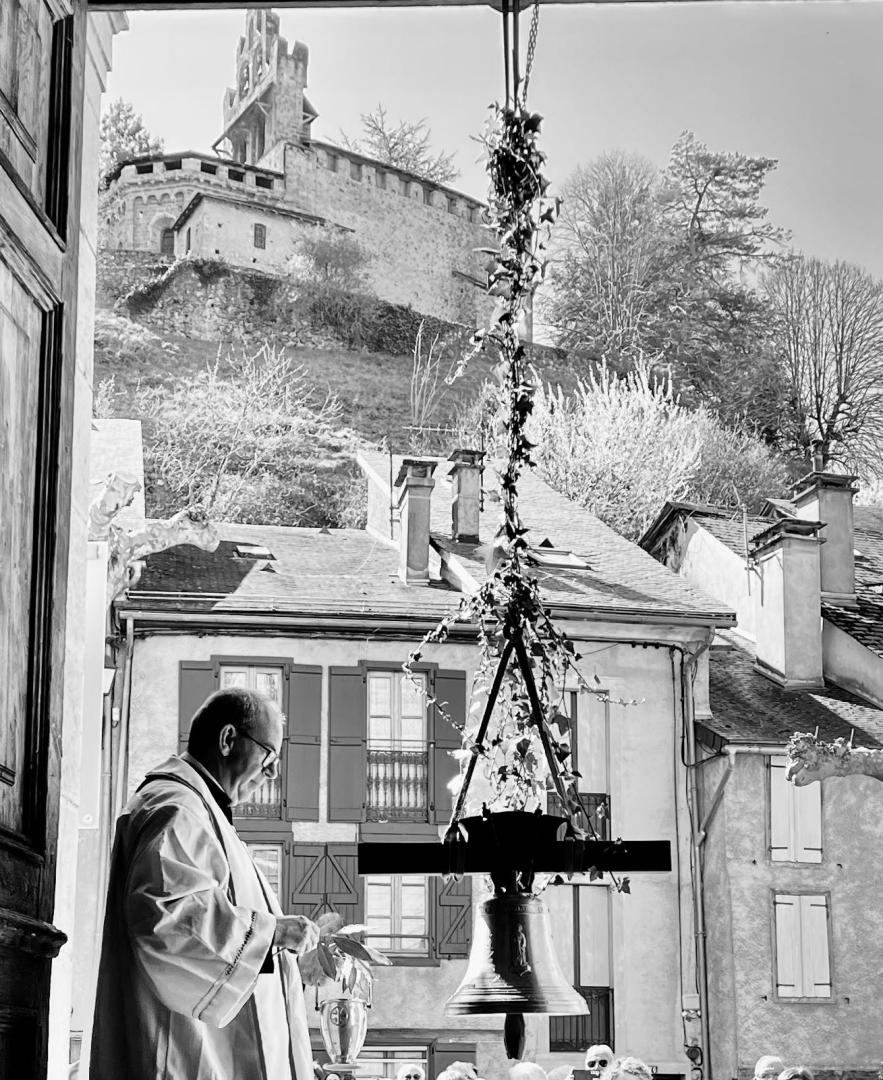 Maintenant, Bertrand de Sentenac, vicaire épiscopal et curé de la paroisse de Saint-Girons, va procéder au baptême de la cloche.