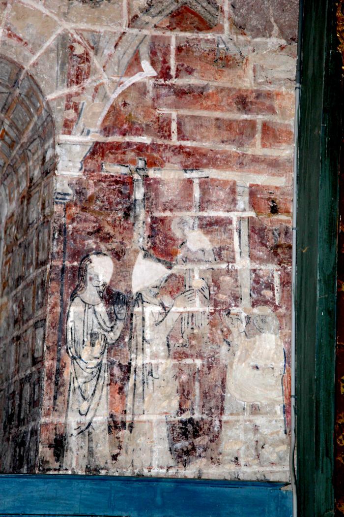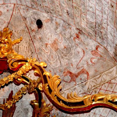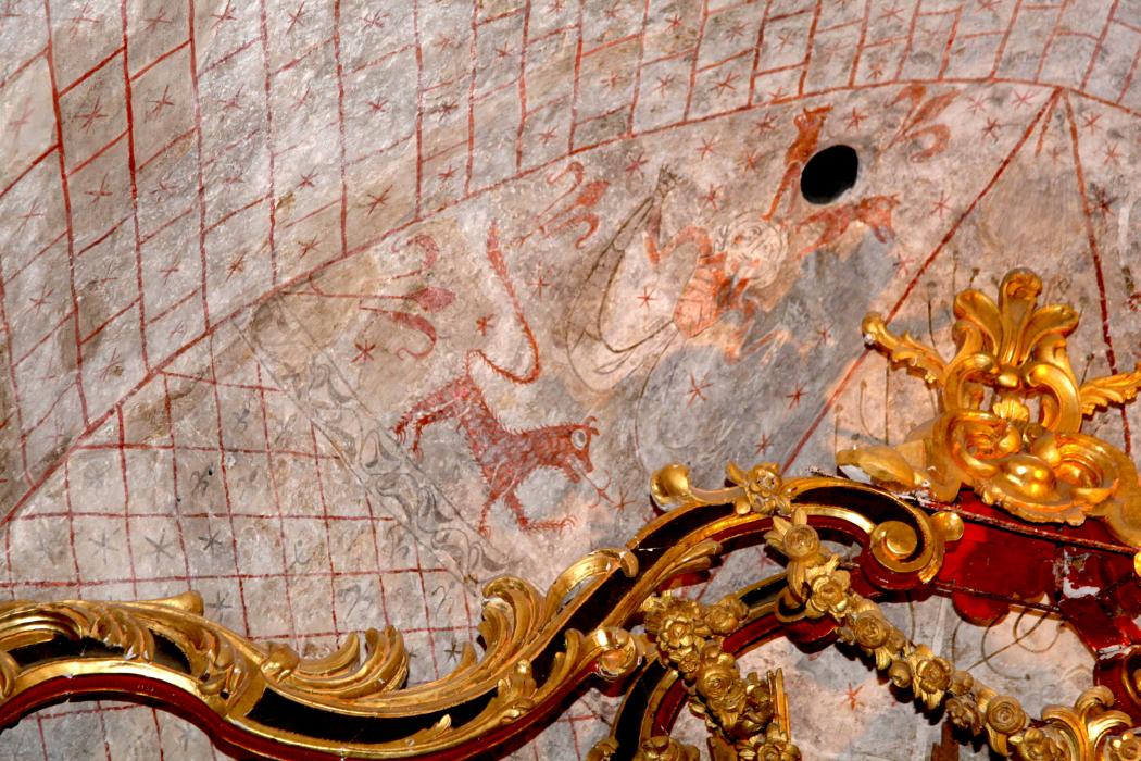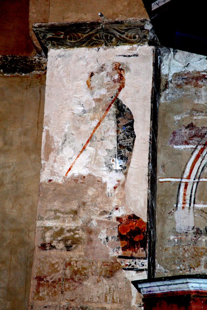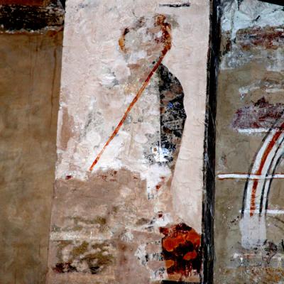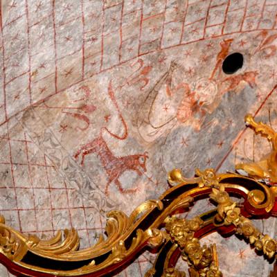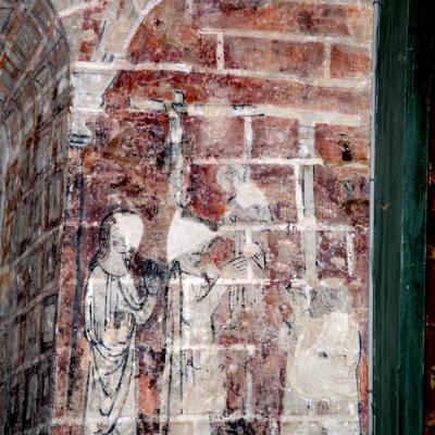 Des travaux d’assainissement en 1996-1997 ont révélé la présence de peintures murales (XIIIème) à l’iconographie rare (arbre de vie de genèse, sirènes bifides) et de trous acoustiques.